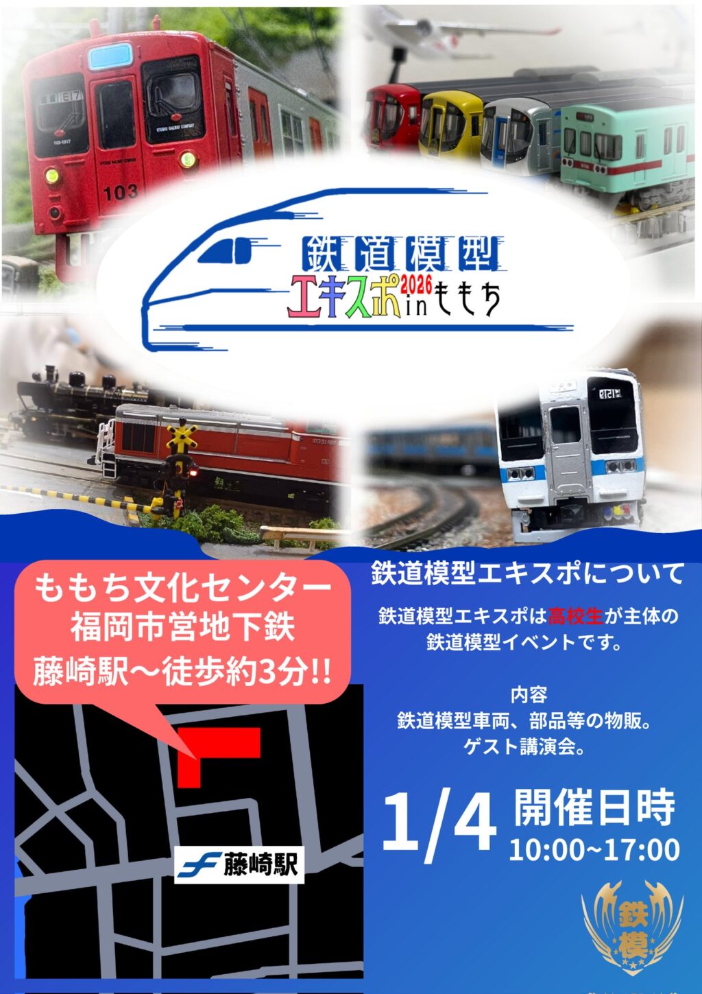1月4日(日曜日)開催の、「鉄道模型エキスポinももち」へ出店いたします!